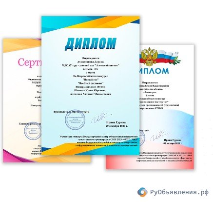 Сертификаты подтверждены лицензиями. Мы являемся резидентами Сколково. Заходите на сайт МЦОиП ру и выберите десятки олимпиад после прохождения которых вы можете заказать диплом.